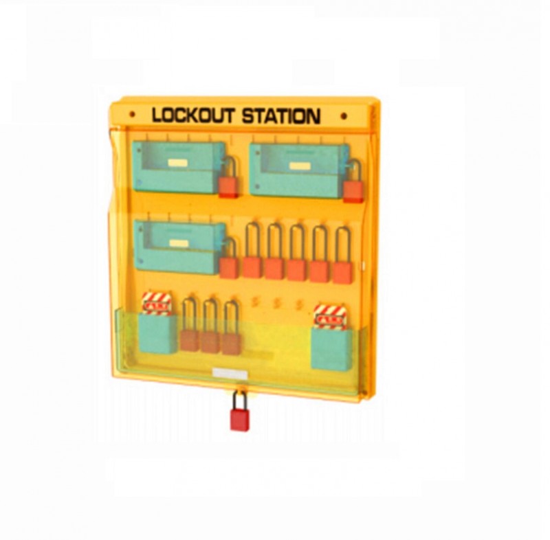 Станция закрытого типа для хранения LOTO замков с прозрачной крышкой. Вмещает 11-22 навесных замка и 3 слота для мобильных телефонов, 2 кармана для бирок. Можно хранить замки как с короткой, так и с длинной дужкой 76 мм. Изготовлена из прочного пластика, закрывается на навесной замок. Станцию без крышки можно заказать под артикулом BD-B204W.