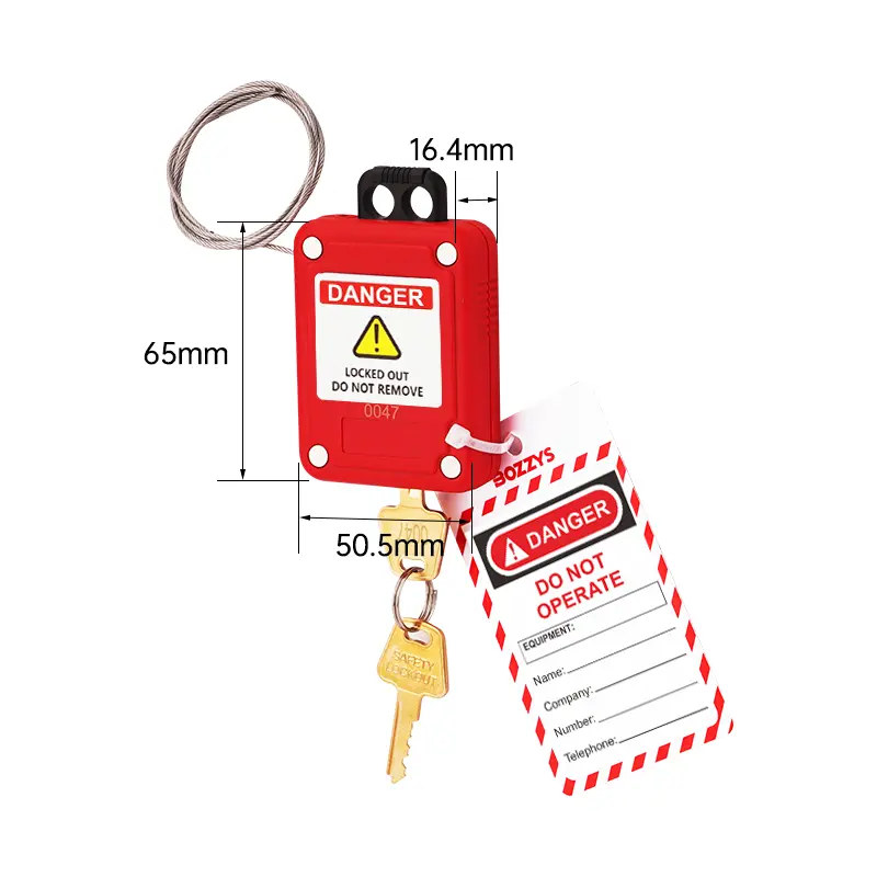Миниатюрный тросовый блокиратор со встроенным замком LG10. За счет своей миниатюрности блокирует объекты в узко доступных местах. Блокиратор является универсальным решением для блокировки контактной коммутационной аппаратуры с заводской подготовкой для использования системы LOTO. Трос из нержавеющей стали, длиной 0,5 метра, диаметром 1,5 мм. Блокиратор имеет встроенный замок, 2 ключа в комплекте. Ключи и тело замкового механизма имеют уникальную нумерацию. Размеры: Высота 66 мм х Ширина 51 мм х Глубина 17 мм